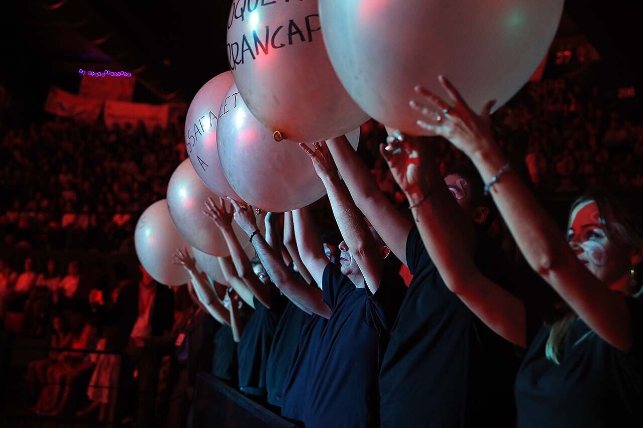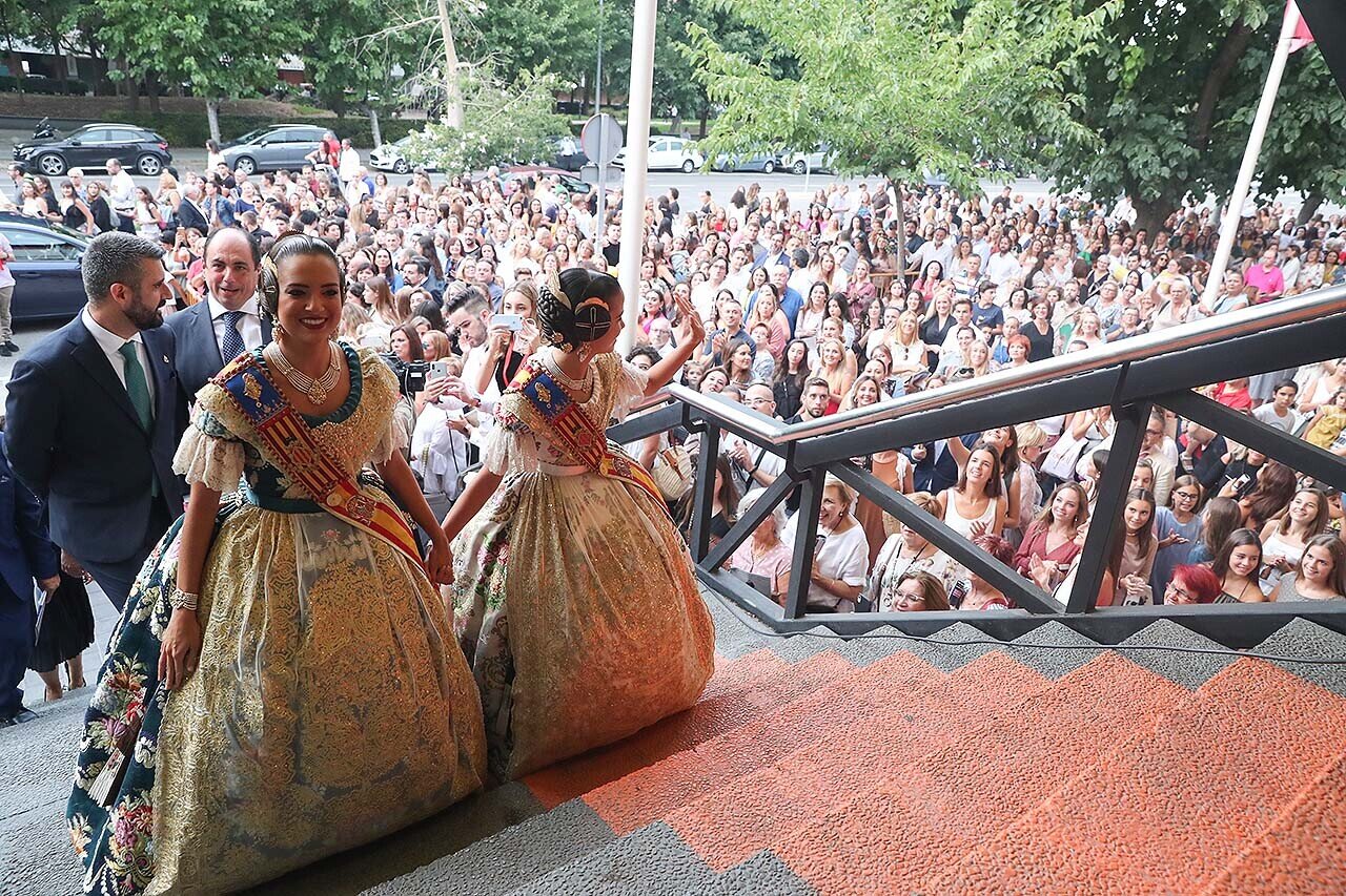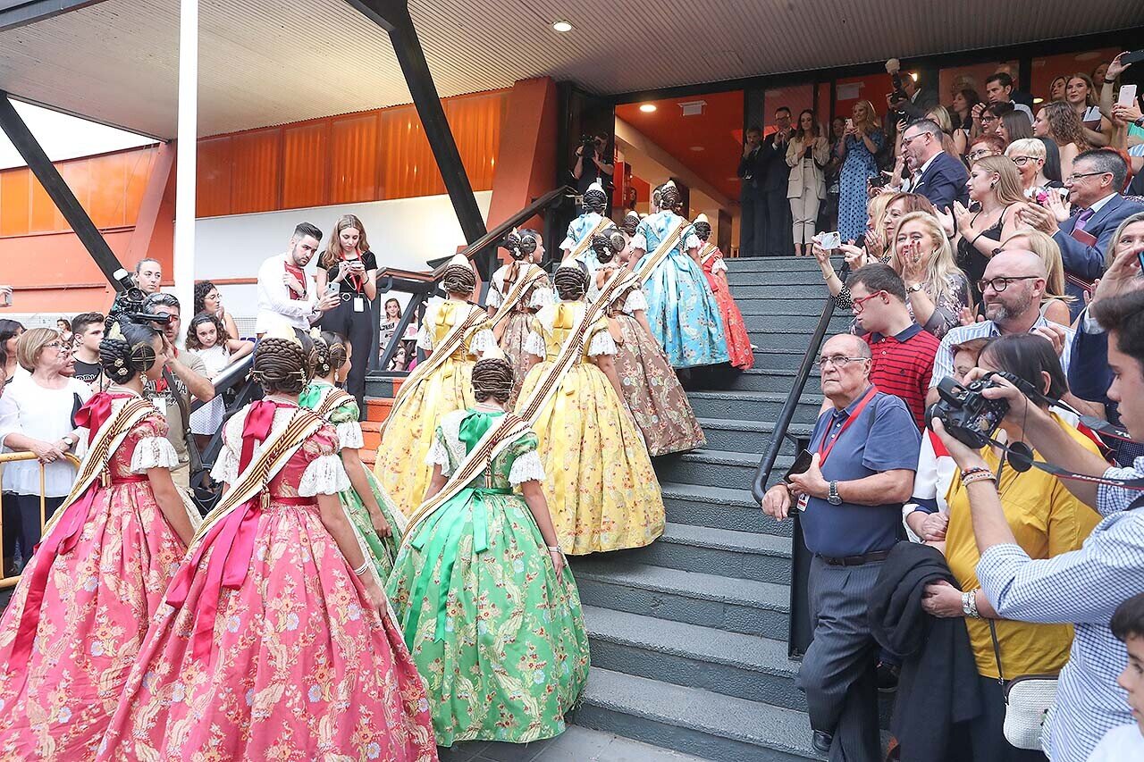 En la mirada de cada una de ellas podía verse reflejada la il • alusión y el nerviosismo de diversas formas, desde el sonrisas y las miradas de emoción a alguna risa nerviosa al ver sus comisiones animando desde las gradas de la Fonteta. Reacciones que contrastaban con las lágrimas al diferenciar algún rostro familiar emocionado también al verlas desfilar.