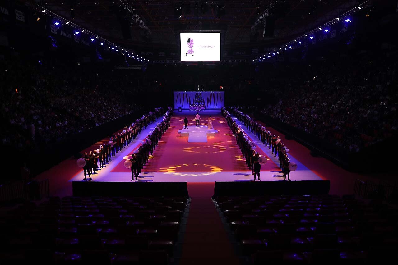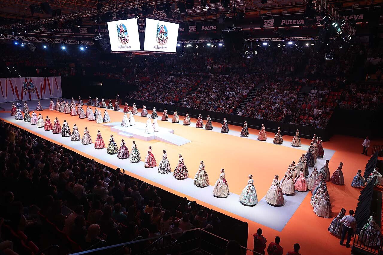 Tras el desfile de las 73 candidatas infantiles y de disfrutar de la segunda parte del espectáculo, es el turno de las candidatas mayores que, como las niñas, desfilan por sectores.