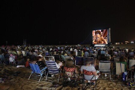 Los espectadores pueden llevarse su propia silla o una toalla para sentarse en la arena para ver las proyecciones de las películas, que comenzarán a las 22:00 horas.