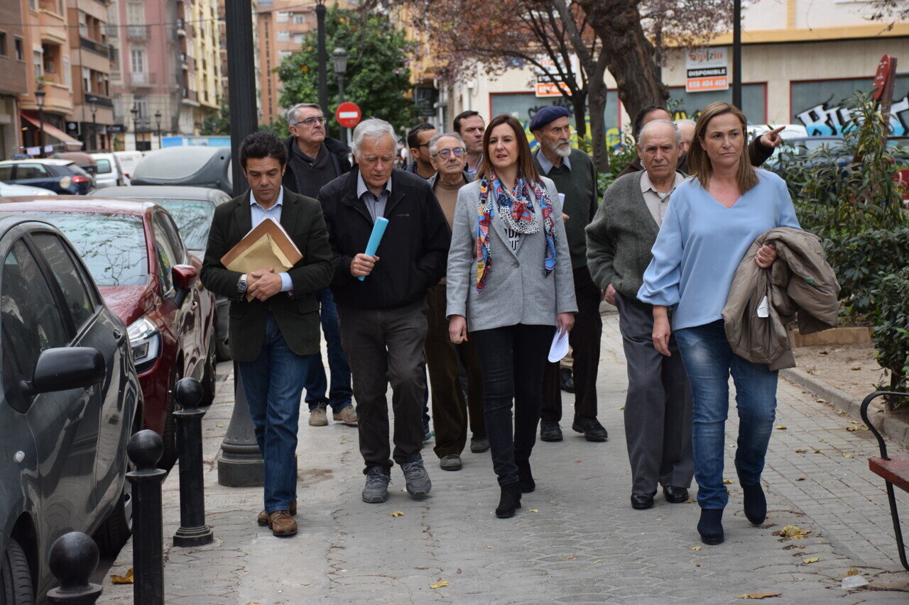 La candidata del Partido Popular a la Alcaldía de Valencia, Mª José Català, ha visitado hoy los barrios de Marchalenes, Morvedre, y la Trinitat del distrito de la Saïdia, junto representantes de las asociaciones de vecinos y comerciantes de la zona, para conocer de primera mano los problemas que están causando a la movilidad la construcción del carril bici de las avenidas de la Constitución y Burjassot.
