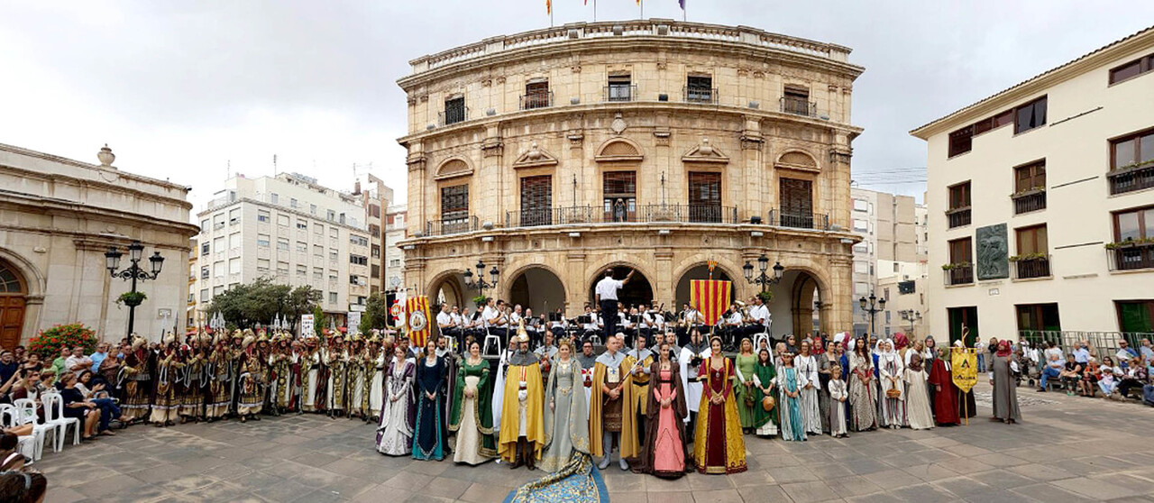 Más de 1.000 personas han asistido esta mañana a los actos de celebración del 9 de Octubre que ha organizado el Ayuntamiento de Castellón para conmemorar el día de la Comunitat Valenciana. La plaza Mayor ha acogido el Desfile de las tres culturas, con la participación de la Asociación Aljama, acompañada por el grupo Xarop; Moros d’Alqueria y Germandat dels Cavallers de la Conquesta; y el concierto especial de la Banda Municipal de Castellón, que ha finalizado con un espectacular remate pirotécnico disparado desde la terraza del edificio consistorial.