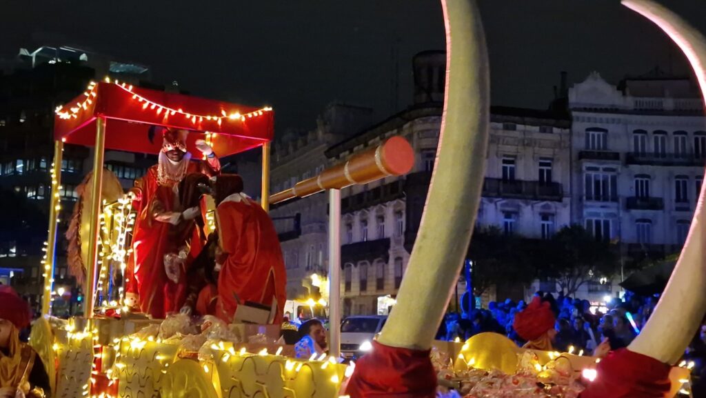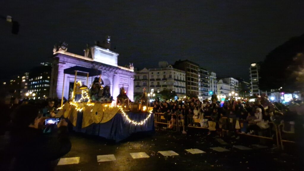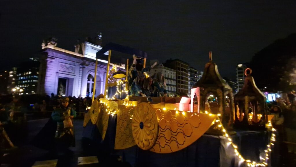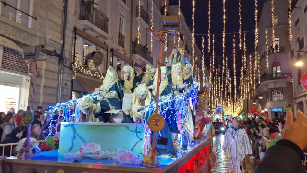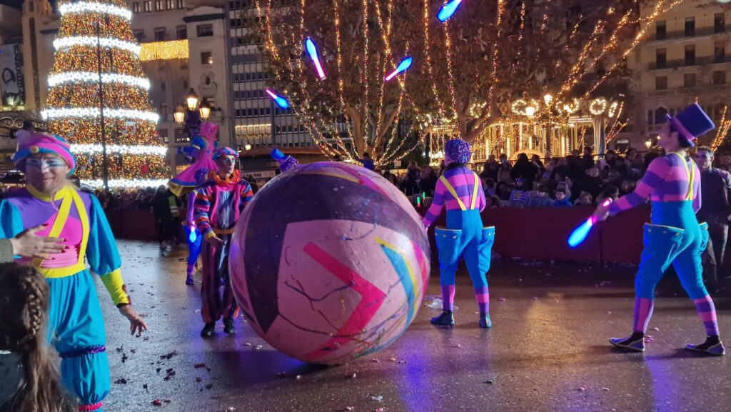 Los boatos de Melchor, Gaspar y Baltasar mantuvieron la estructura clásica: ofrenda, pajes, números artísticos y, finalmente, la carroza de cada rey. Melchor lució el verde, Gaspar el azul y Baltasar el rojo, acompañados por acróbatas, bailarines y espectáculos circenses.