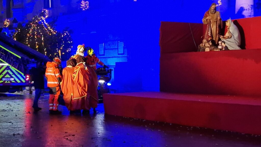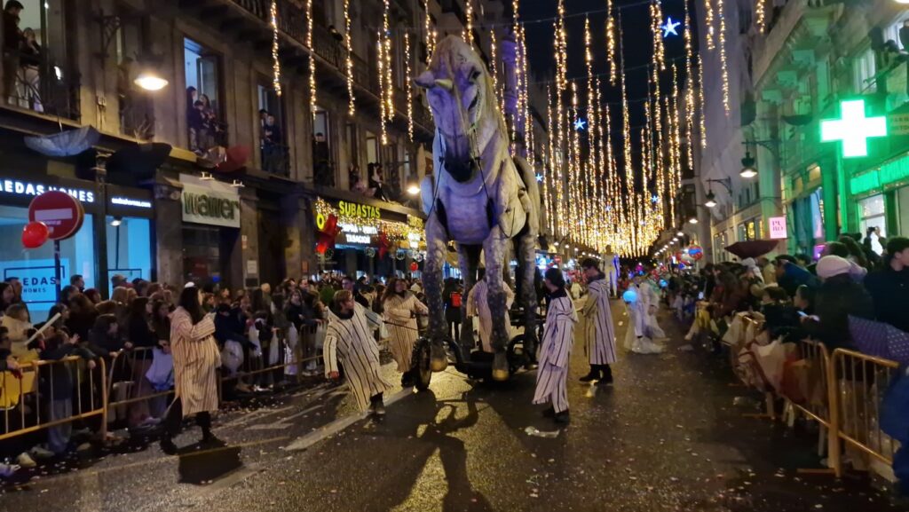 Algunos asistentes aguardaron durante horas para asegurarse un buen sitio, protegiéndose del frío y de las primeras gotas bajo plásticos improvisados. La espera mereció la pena: a las 17:30 horas, la cabalgata arrancó puntualmente y la lluvia desapareció.