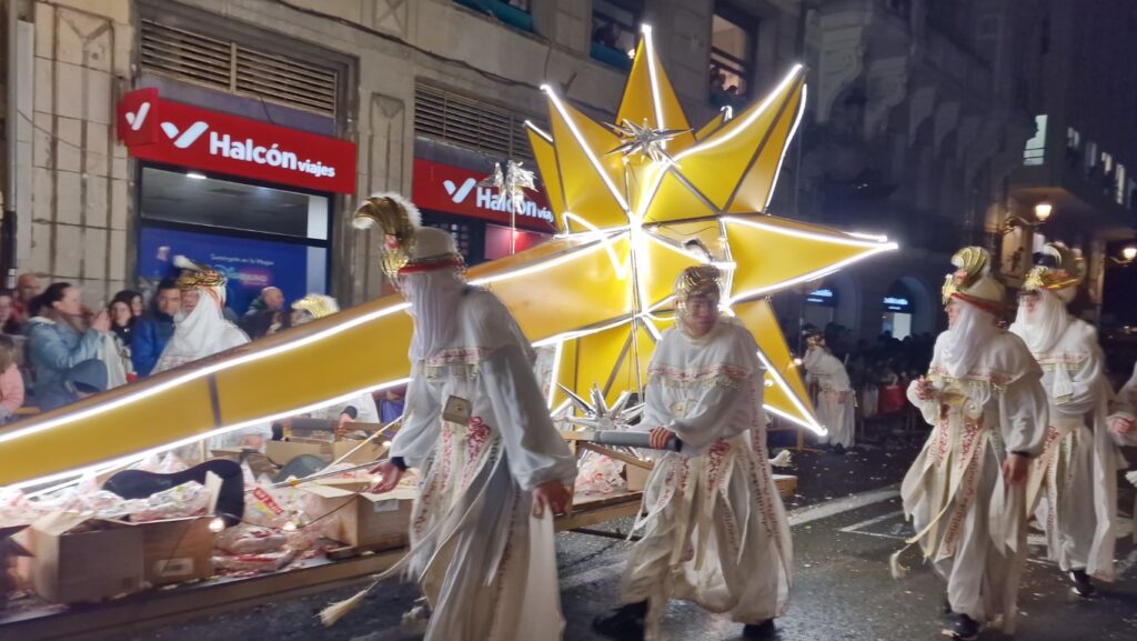 A lo largo del recorrido, asociaciones, entidades deportivas y elementos emblemáticos como la Estrella y el Buzón Real acompañaron a las carrozas. Entre las novedades destacó Selene, la Diosa de la Ilusión, una figura de cinco metros de altura creada expresamente para esta cabalgata.