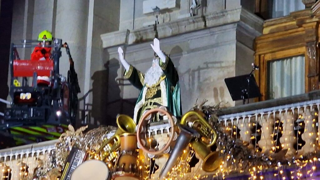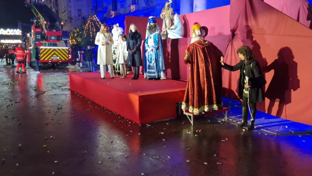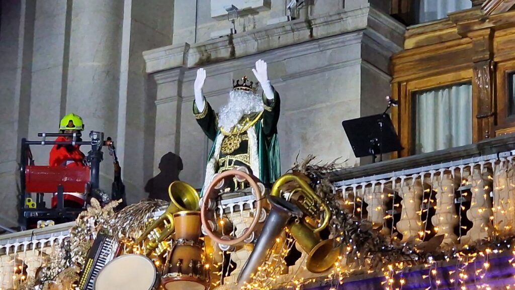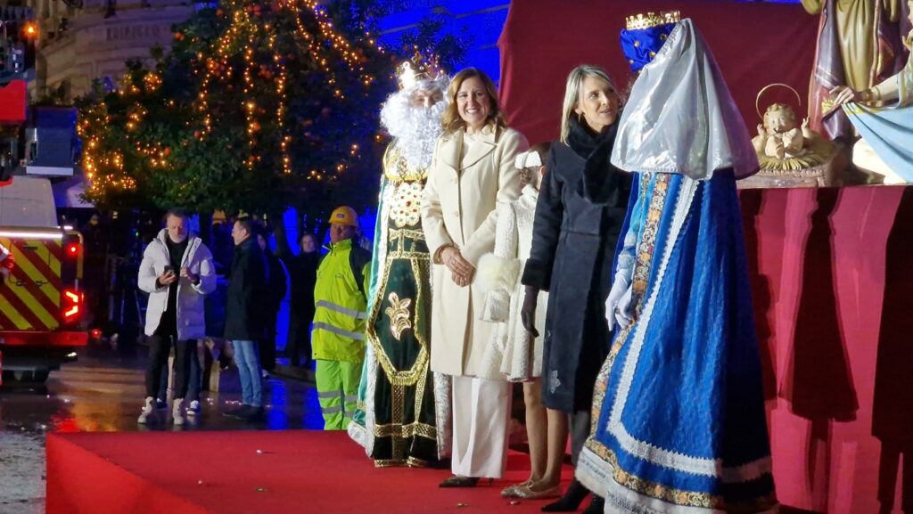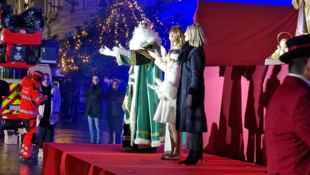La tradicional adoración al Niño Jesús volvió a celebrarse frente al Ayuntamiento, con una tarima elevada y un espectáculo pirotécnico final. Desde el balcón, Melchor destacó la luz del Mediterráneo y los valores de convivencia de la infancia valenciana.