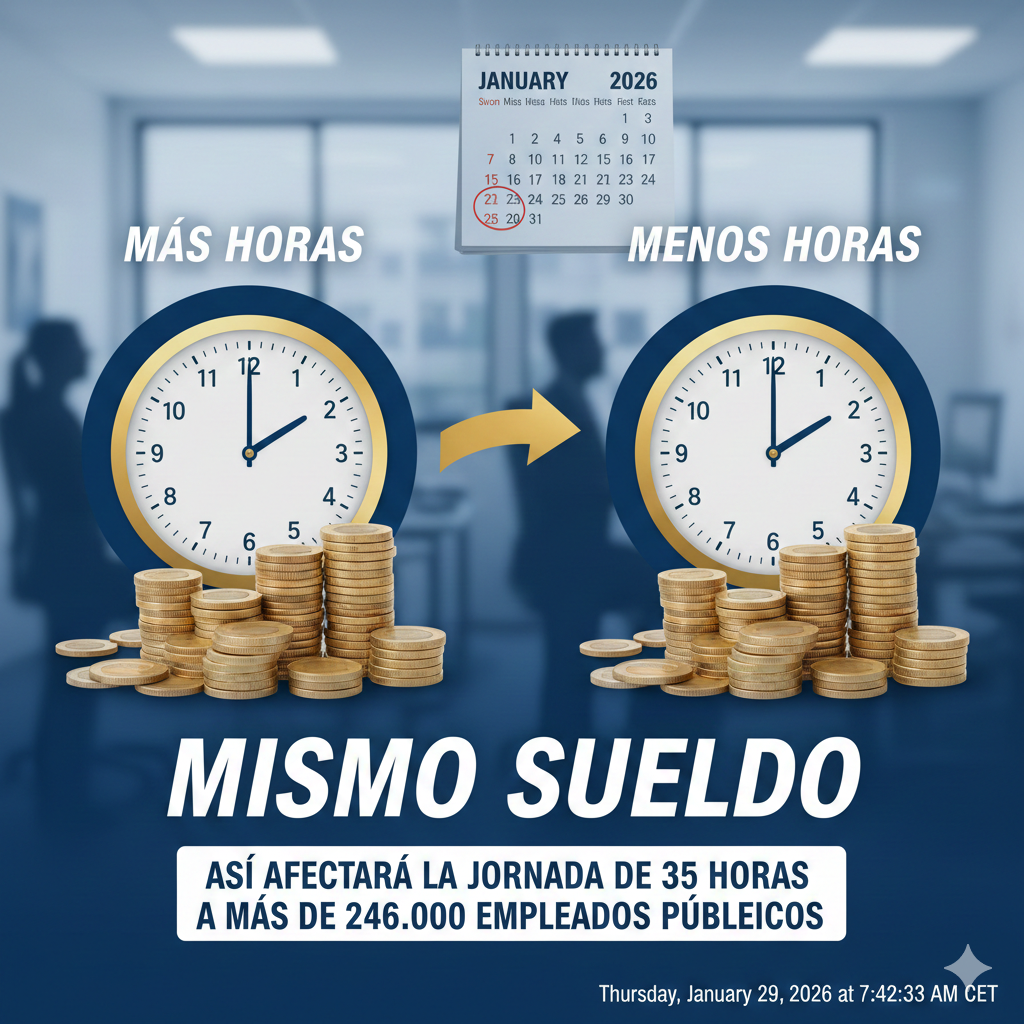El Gobierno ha puesto en marcha el procedimiento para reducir la jornada laboral a 35 horas semanales en la Administración General del Estado. Una decisión que, más allá del debate político y sindical, tendrá un efecto directo en el bolsillo y en el día a día de más de 246.000 empleados públicos, muchos de ellos residentes en la Comunitat Valenciana.