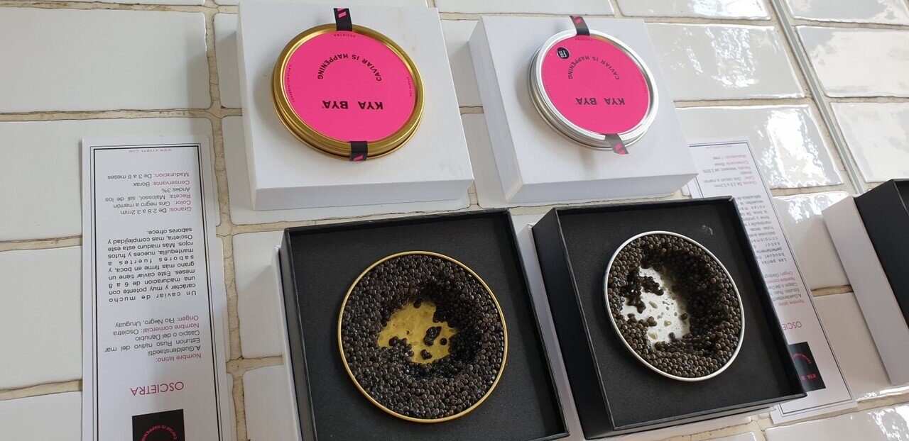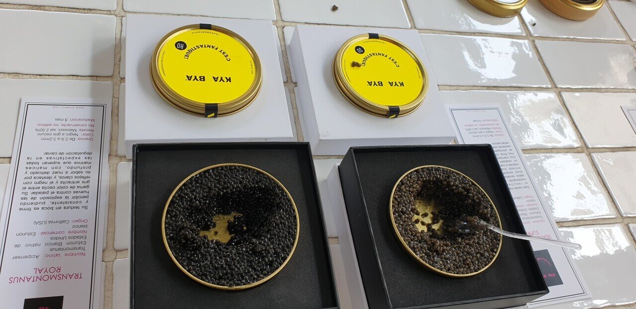 Encontraran caviares de Uruguay, de Francia, de Estados Unidos y de Bulgaria. Esturiones rusos y siberianos (Oscietra y Baeri), esturiones blancos (Transmontanus) y también el famoso Beluga (Huso Huso).
