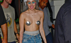 Miley Cyrus Topless en Miami, Miley vuelve a ser la protagonista con sus poco avultados vestidos En esta ocasión se vistió con un top que apenas la tapaba nada para ir a una fiesta en Miami vistiendo nada más que un conjunto sexy y pantalones cortos. Por lo que parece coge lo primero que ve y se lo pone