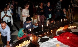 Los jóvenes voluntarios acompañan hasta el altar a quienes aceptan su invitación de encender una vela, escribir una petición (que será oración permanente en la clausura de un lugar sagrado), tomar una cita bíblica al azar y dar gracias por la Luz.
