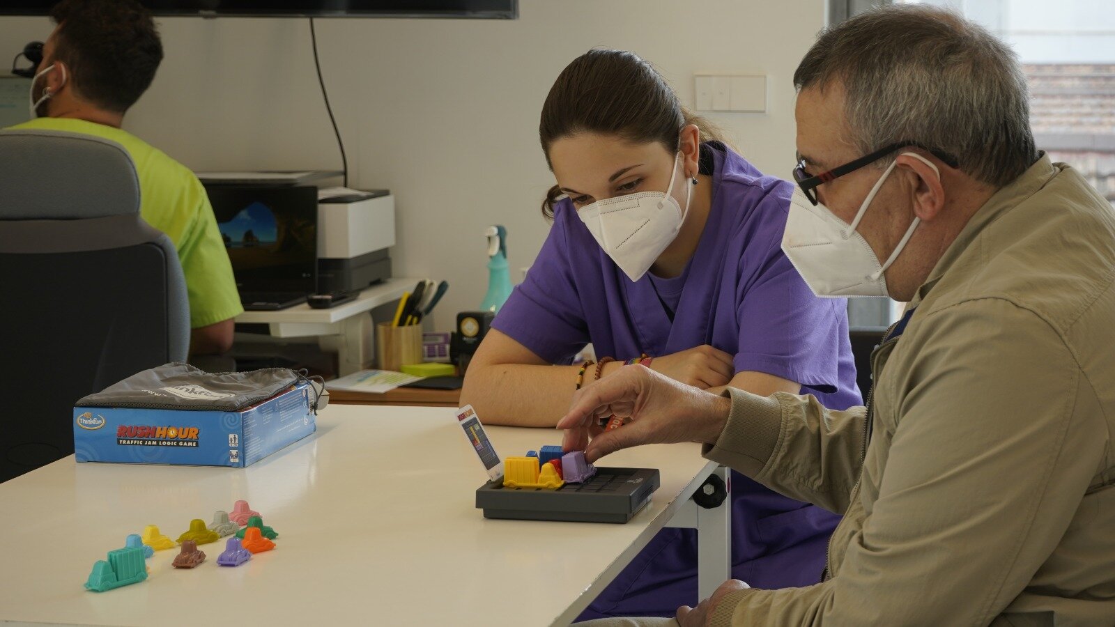 El centro de actividades de Nueva Opción, entidad referente en la atención al DCA con más de 25 años de trayectoria, ocupa la segunda planta del edificio social de la FPAA. Debido a la pandemia, actualmente asisten 12 personas en días alternos, en horario de 9 a 14 horas, aunque puede acoger hasta 20 plazas. Cada una de ellas sigue un programa personalizado que contempla actividad ocupacional y supervisión terapéutica por medio de un equipo multidisciplinar de profesionales de fisioterapia, terapia ocupacional, logopedia, neuropsicología y trabajo social. Todo el trabajo está orientado a facilitar el desarrollo de la vida diaria de la persona con DCA con la mayor autonomía posible.