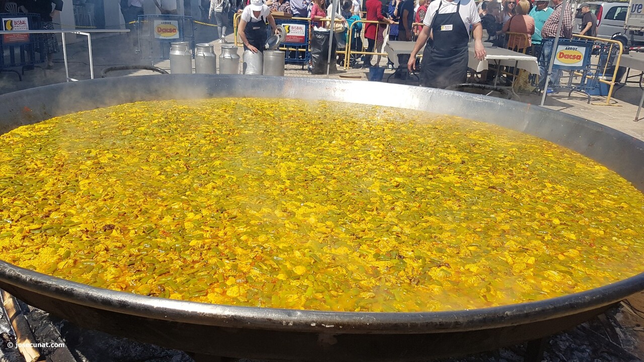 Cómo en años anteriores, se cocinaron dos paellas, realizadas por Bisbal paelles monumentals y pudimos ver caras conocidas como la de los jefe de cocina Juan Carlos Galbis, Raúl Barruguer, Paco Rodriguez y Pere Gómez. La composición de la paella fue realizada con los ingredientes contenporáneos de arroz 120 kg,Aceite 30 l,Sal 6 kg,Pimentón 1 kg,Colorante 100g,Azafrán 3g,Verduras 110 kg, Pollo 160 kg, Conejo 80 kg, Para 1000 comensales y todos los vecinos. Alrededor de la plaza, estuvieron ubicados el Parque infantil, y la “I Mostra de Municipis del Camp de Túria”, una Muestra que dió a conocer a todas las diferentes localidades que conforman la Comarca.