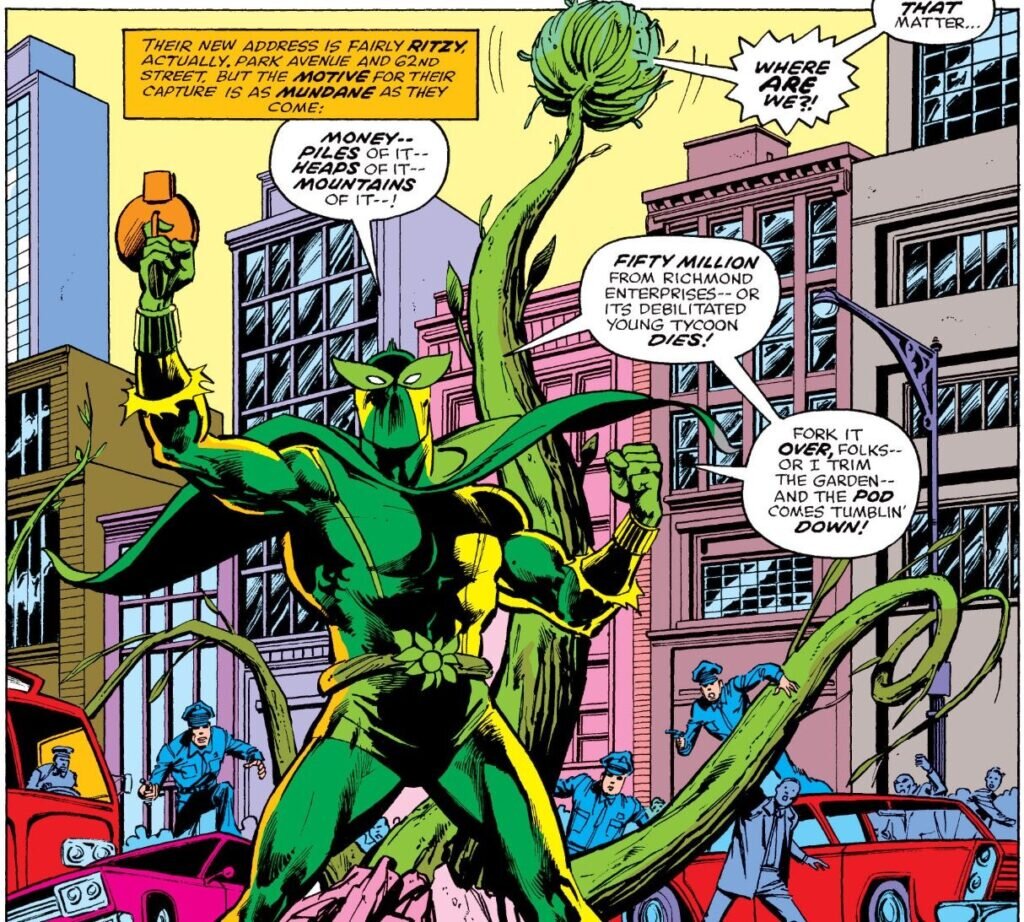Smithers más tarde se ramificó por su cuenta para convertirse en el cerebro de una operación criminal más grande. Desarrolló su “Pretty Poison” que probó en campo en su némesis de toda la vida, el Capitán América. La toxina colocó al Capitán en un coma debilitante y potencialmente mortal. El Halcón y el Hombre Araña fueron capaces de rastrear y derrotar a Plant Man, adquiriendo y administrando el antídoto justo antes de que el Capitán América sucumbiera al efecto del veneno. [9] Plantman también se enfrentó en varias ocasiones con los Micronautas,[10] los Vengadores,[11] Vuelo Alfa,[12] Ojo de Halcón,[13] los Cuatro Fantásticos,[14] y She-Hulk,[15] entre otros.