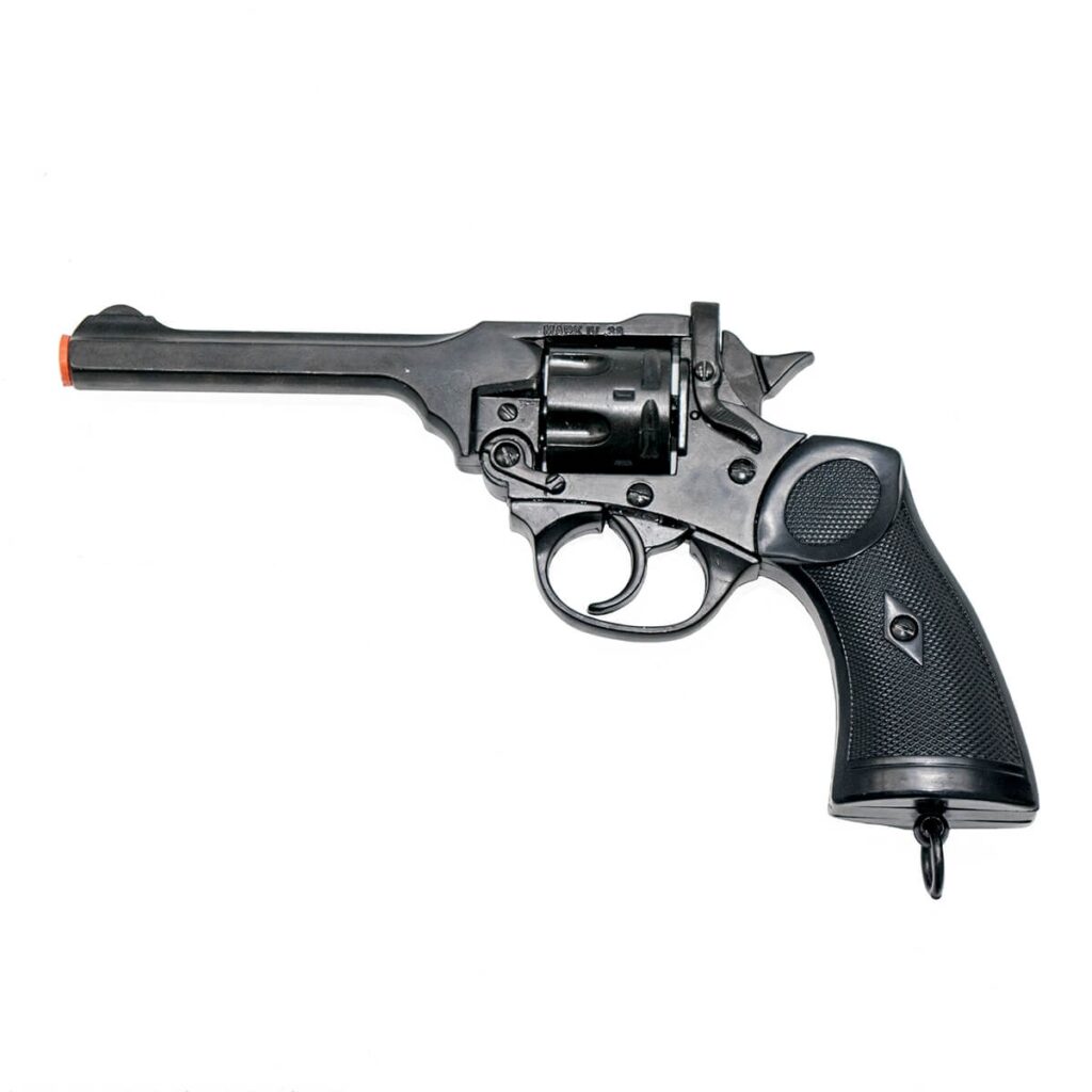 En resumen, la Webley Mark IV (1912) es un revólver de seis tiros fabricado por la empresa Webley & Scott entre 1872 y 1915, utilizado por las fuerzas armadas británicas durante la Primera Guerra Mundial. Es conocido por su uso en las películas de Indiana Jones y es una pieza popular entre los coleccionistas y los fans de la saga.