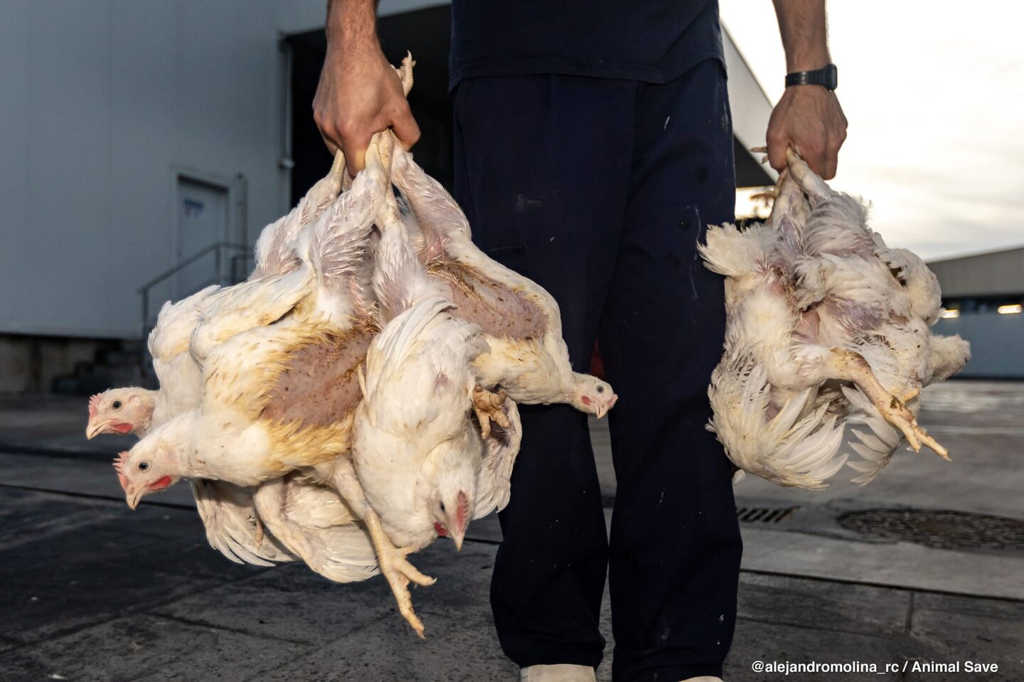 El pasado viernes una veintena de activistas del grupo Valencia Animal Save se reunió a las puertas de un matadero de un pueblo de Valencia. Fueron a presenciar la llegada de los camiones llenos de aves.
