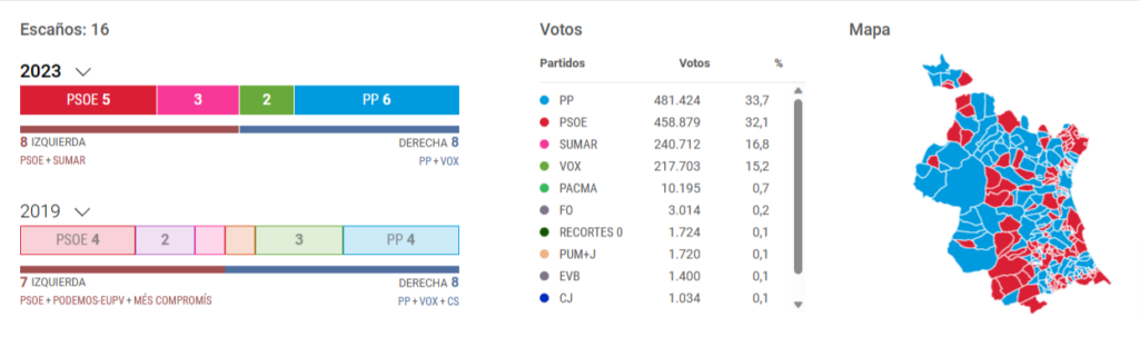 El Partido Popular (PP) ha logrado un total de 8 escaños, lo que representa un aumento de dos escaños en comparación con las elecciones anteriores. Este resultado indica un avance electoral para el PP en la región, ya que ha ganado más representación en el Senado.