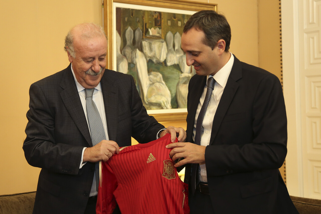 Del Bosque ha aprofitat la seua primera visita oficial a la Diputació d’Alacant per a signar en el Llibre d’Honor de la institució provincial i obsequiar el president amb una samarreta de la Selecció Espanyola signada per ell.