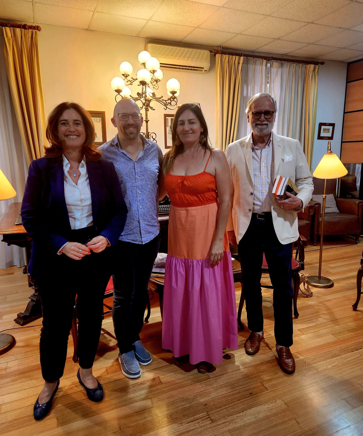 Valencia a 21 de junio de 2023- “Muerdealmas” es un cruce aterrador entre El Resplandor y Perros de Paja. Así resume Santiago Alvarez la novela que ha aterrado, literalmente, a los miembros del Club de Lectura del Casino de Agricultura que ayer se reunieron con el autor valenciano y con la bookinstagramer, Margarita Quesada, que dirigió una tertulia animada con el coreógrafo que orquesta escenas de acción con su novela, dignas de un western de Tarantino.