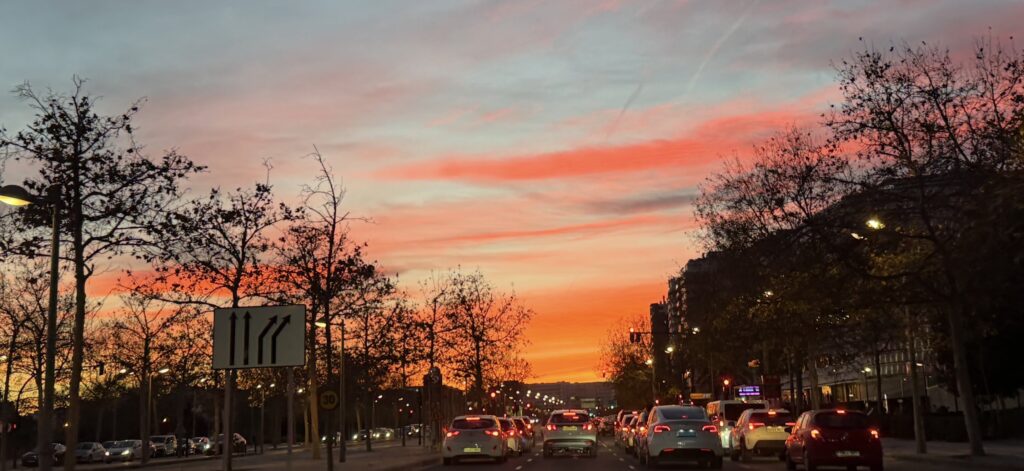 Este tipo de atardeceres no es extraño en los meses de invierno, cuando la inclinación del sol hace que su luz recorra una mayor distancia en la atmósfera. En ese trayecto, los tonos azules se dispersan y predominan los colores cálidos, dando lugar a cielos especialmente intensos.
