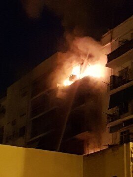 Un incendio originado en un piso de la calle Belchite en el barrio de Zaidía ha calcinado por completo una vivienda en el septimo piso y varias casas han sido afectadas por el mismo sin que haya provocado daños personales.