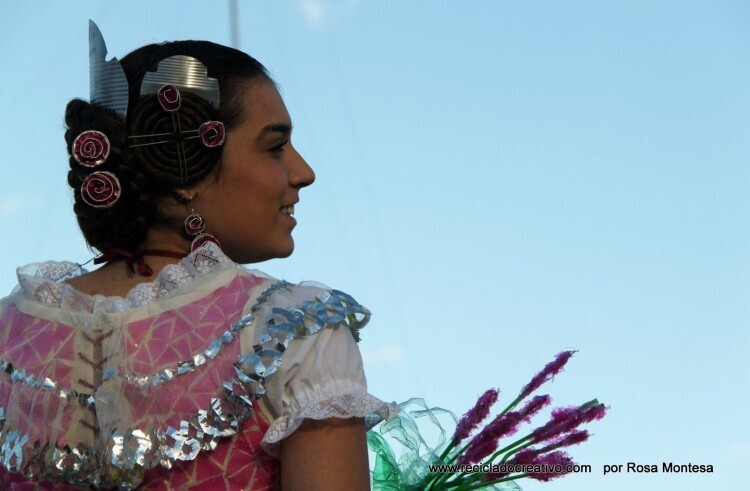 De nuevo Rosa Montesa desde su blog recicladocreativo.com. Nos sorprende con otro traje de fallera realizado con material reciclado