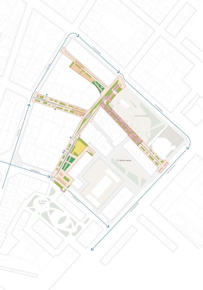 La primera supermanzana del barrio de Orriols abarca todo el ámbito incluido entre las calles Padre Viñas, Duque de Mandas, San Vicente de Paul y Reig Genovés, e integrará todos los espacios ya peatonalizados en el entorno del núcleo histórico tradicional de Orriols, así como el jardín de la Ermita y el CEIP Bartolomé Cossio.