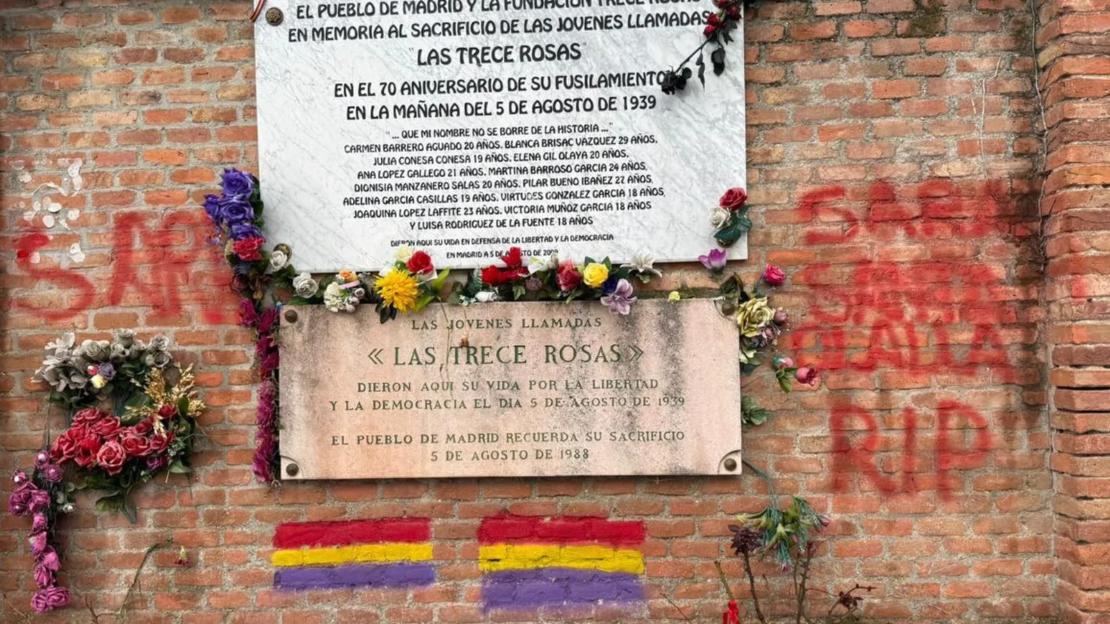 El monumento que rinde homenaje a las Trece Rosas, situado en el cementerio del Este de Madrid, ha sido vandalizado este sábado con pintadas que incluyen amenazas de muerte dirigidas a la comunicadora y analista política Sarah Santaolalla.