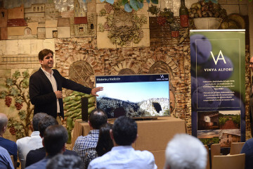 Penedés presentó también en el acto sus dos vinos: Vinya Alforí y Vinya Alforí Blanco, que pudieron ser degustados posteriormente por los asistentes y desgranó su cuidado proceso de elaboración.