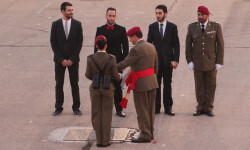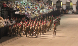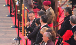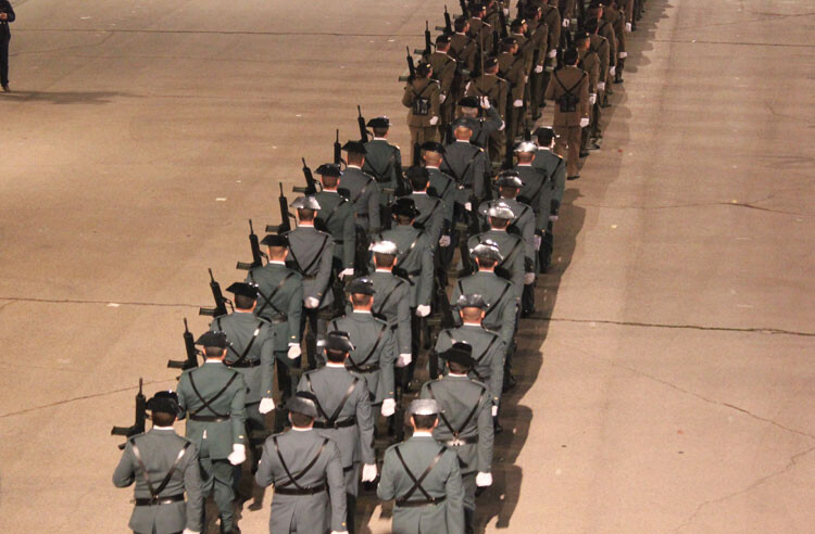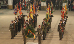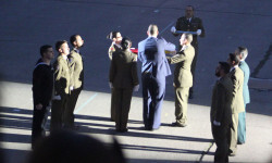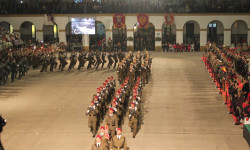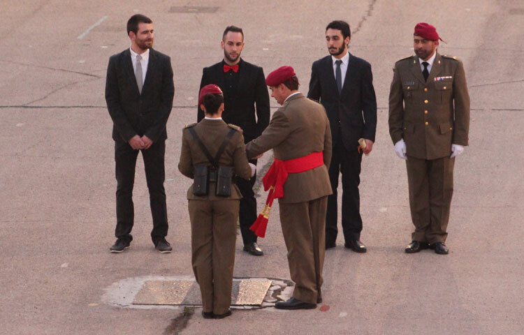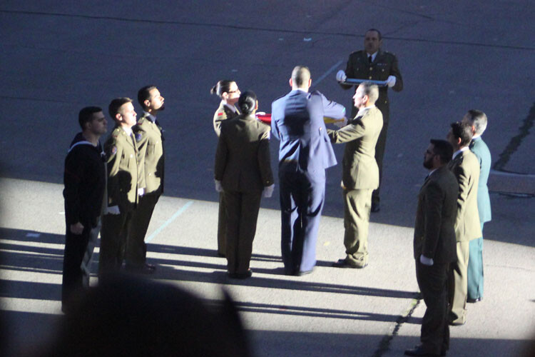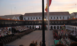 La Bandera Nacional que ha presidido el acto ha sido arriada y se le ha entregado este año al Colegio “Marqués Dos Aguas” de Bétera (Valencia), como gesto de hermanamiento entre las FAS y la sociedad.