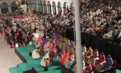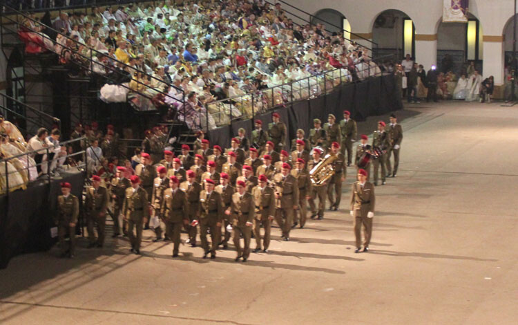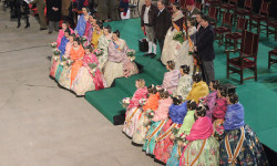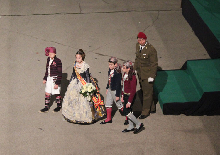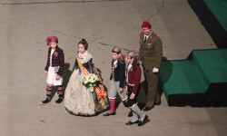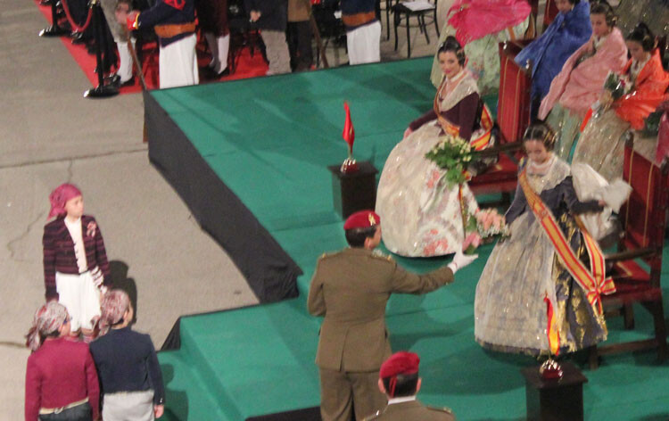 El acto ha comenzado en el Excmo. Ayuntamiento de Valencia, a donde han acudido los Guiones y Banderines de las Unidades de la Guarnición de Valencia para acompañar a las Falleras Mayores de Valencia con sus Cortes de Honor.