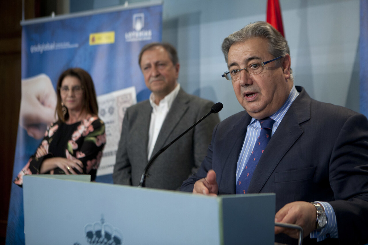 Zoido se pronunció así durante los actos de presentación esta tarde del décimo del Sorteo de Lotería Nacional del próximo sábado, 3 de marzo, dedicado a las personas desaparecidas sin causa aparente, que se celebra el día 9 de este mes. El ministro, en un acto celebrado en la sede de su departamento, estuvo acompañado por la presidenta de Loterías y Apuestas del Estado, Inmaculada García y el periodista Paco Lobatón, presidente de la Fundación por las Personas Desaparecidas.